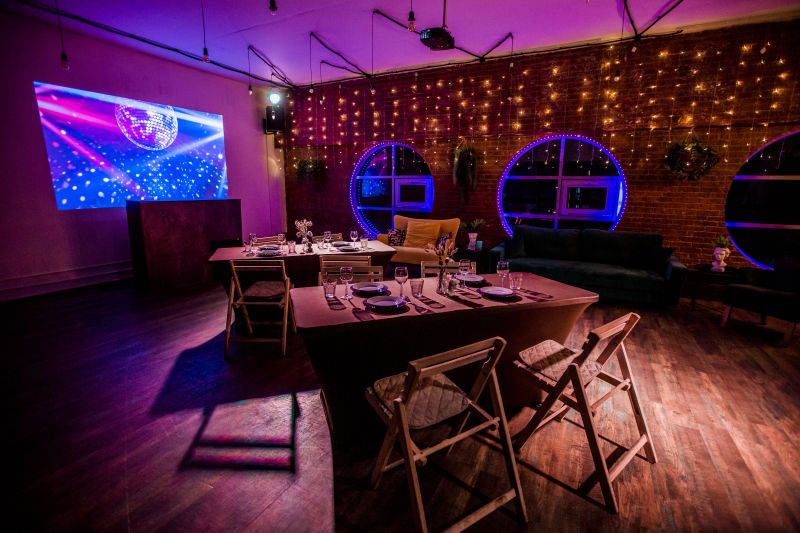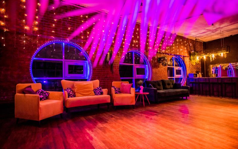 - В лофте для Вас организовано пространство для DJ с необходимым звуковым (1 кВт) и световым оборудованием, можно использовать для вечеринок, дискотек, караоке.
