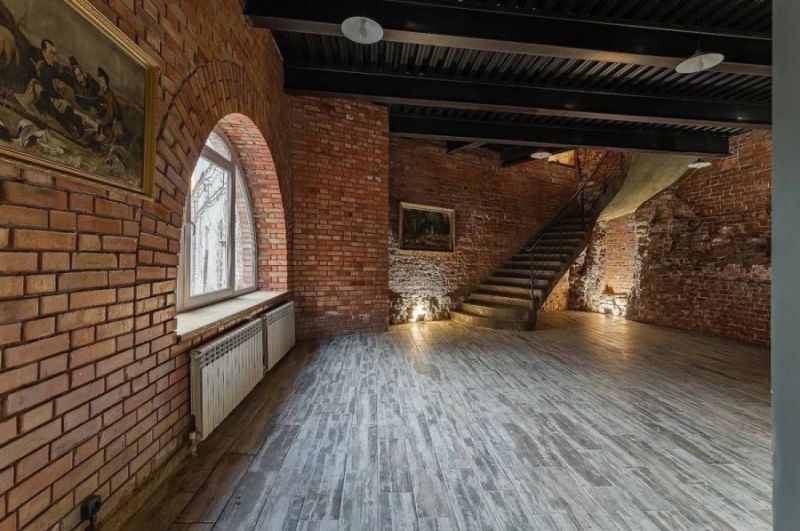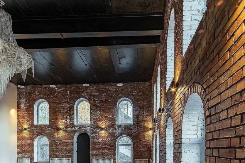 В интерьере преобладает тёплая цветовая гамма с оттенками коричневого. Стены выполнены из кирпича — это отличный фон для стильных современных фотографий.