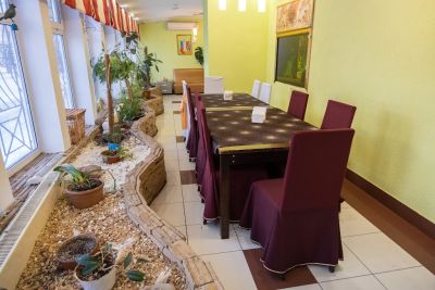 Площадка с уютной атмосферой и комфортабельными условиями, расположенная в центре города. Есть выделенная парковка для автомобилей. В меню разнообразные блюда европейской, русской и кавказской кухни.