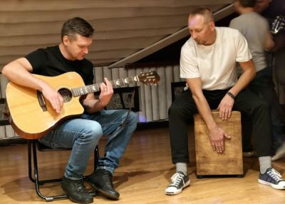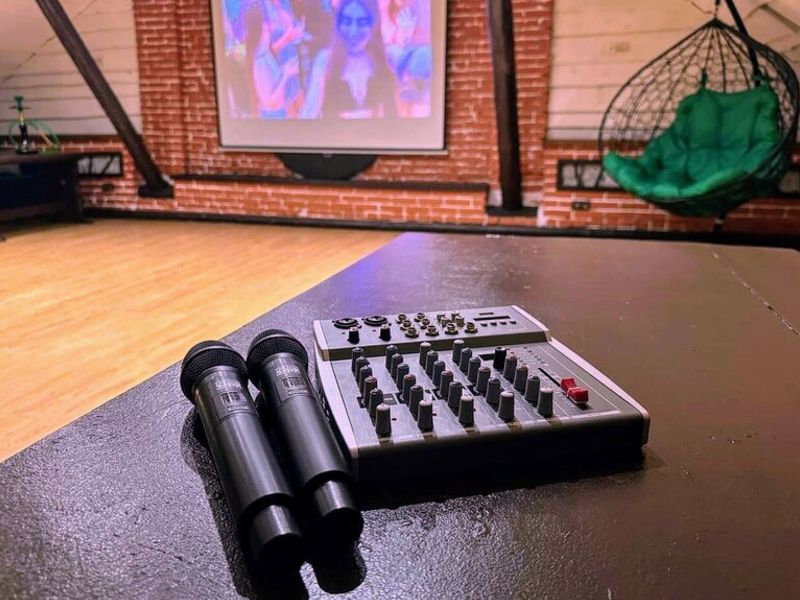 Караоке с двумя микрофонами.