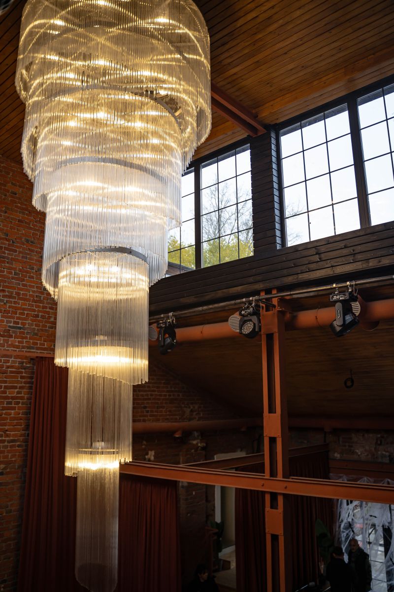 В лучших традициях AG LOFT мы бережно переосмыслили заводское прошлое зала VINYL с сохранением ключевых элементов индустриального стиля. Высокие потолки и панорамные окна наполняют помещение естественным светом и визуально расширяют пространство. Центром притяжения локации является роскошная многоступенчатая раритетная люстра, изящно вписанная в актуальный контекст.