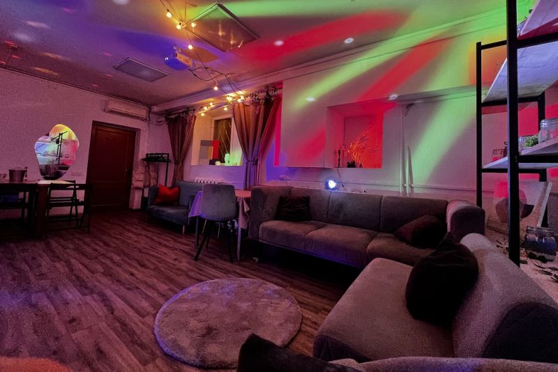 В Лофте профессиональный качественный звук, клубный свет, холодильник, микроволновка, проектор, караоке с двумя беспроводными микрофонами Shure, комплект мягкой удобной мебели, множество вариантов освещения от дневного до клубного, посуда и кальяны
