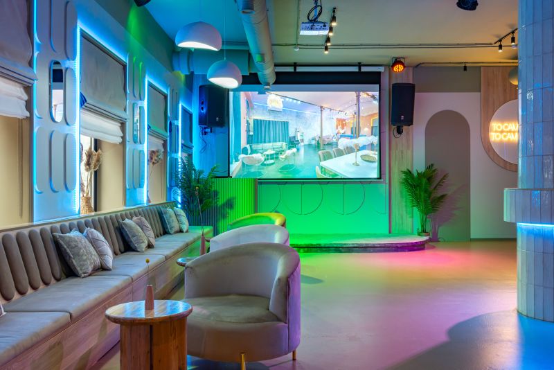 Большое количество естественного света и профессиональная светомузыкальная аппаратура