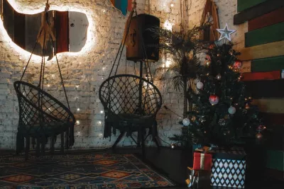 Интерьер выполнен в итальянском стиле Мемфис.